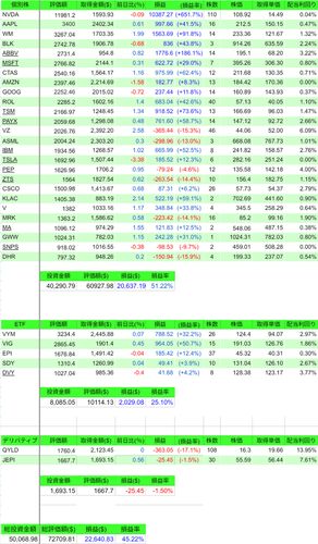 2024年12月末の資産状況です。 資産は順調に増えていますね。今年は、米国株にとってはいい1年だったと思います。来年はトランプ氏が大統領に返り咲きで、相場の不透明感がましていますけどね。関税や移民排斥などインフレ要因となりそうな公約を掲げてます…